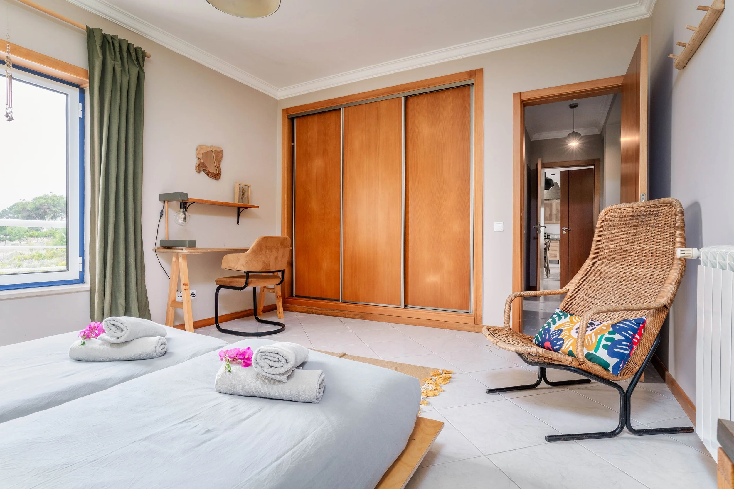 The villa features two floors and five cozy bedrooms. All rooms can be booked with two single or one double bed, and beds are freshly made for your arrival. Each guest will receive both a large and small towel. When registering, you can select the room that suits you best. Please note: spaces are limited. To keep the retreat small and intimate, we welcome a maximum of 10 participants, ensuring a personalized and meaningful experience for everyone.
